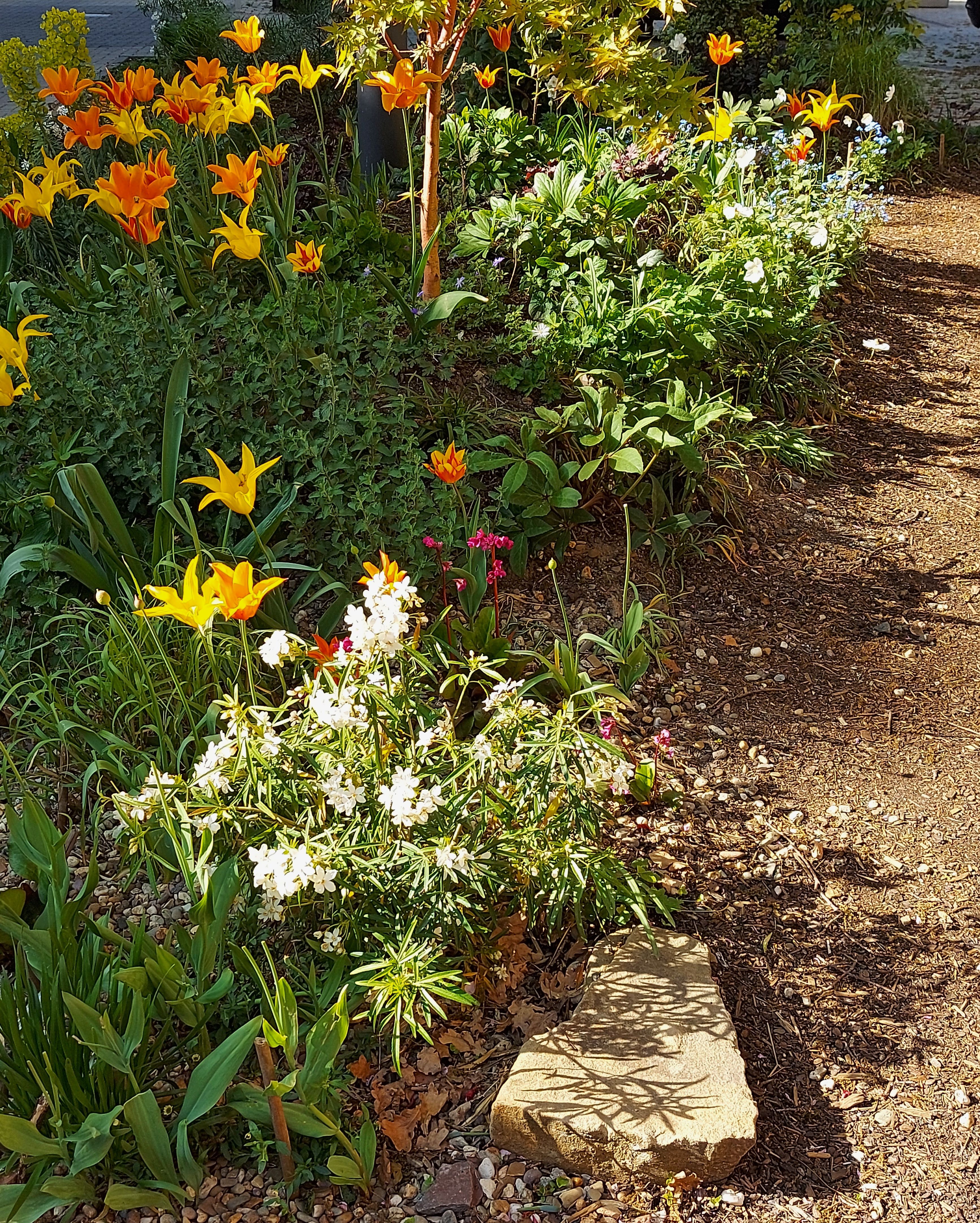 Im Frühjahr 2021 entstand zu beiden Seiten der Hofeinfahrt zwischen der Kreuzkirche und dem "zentrum plus" Derendorf-Golzheim eine kleine grüne Oase - unser Sinnesgarten.